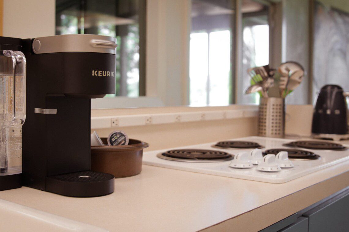 Kitchen with Keurig and Smeg kettle